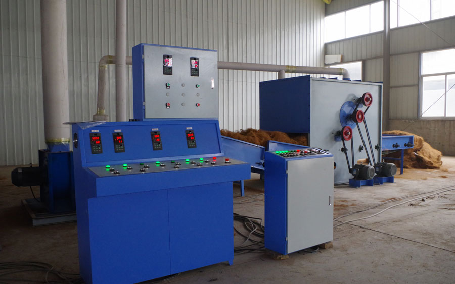 本生產線是利用椰棕纖維和低熔點環保纖維通過高溫熱風穿透粘合定型而成,椰棕墊是床上用品、服裝家具、沙發高級的芯墊材料