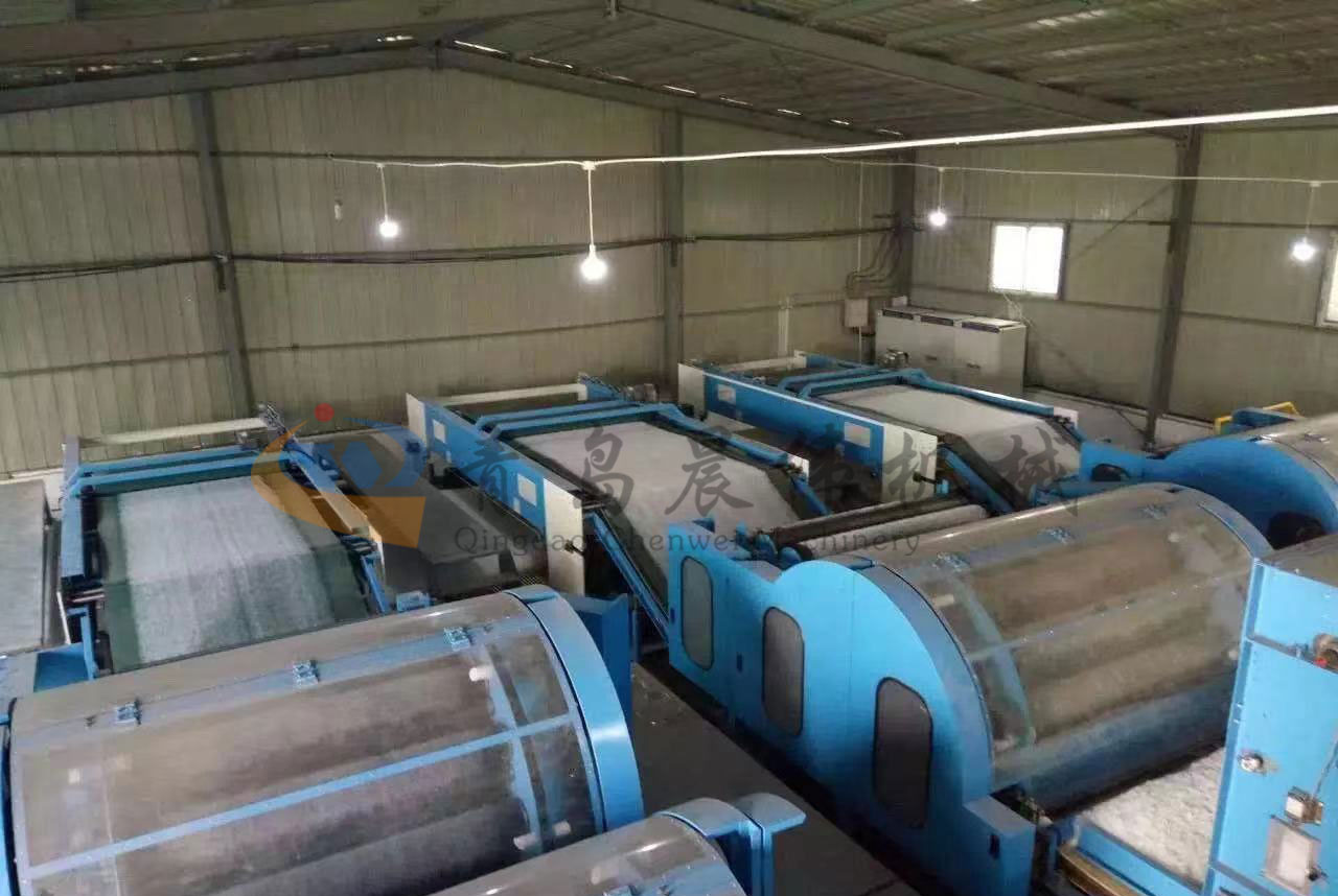 該生產(chǎn)線用于生產(chǎn)高檔家用紡織材料仿絲棉, 仿絲棉廣泛應(yīng)用于服裝、床上用品、家具等。根據(jù)客戶要求可分四機頭、六機頭、七機頭等。機頭越多,產(chǎn)量越高。